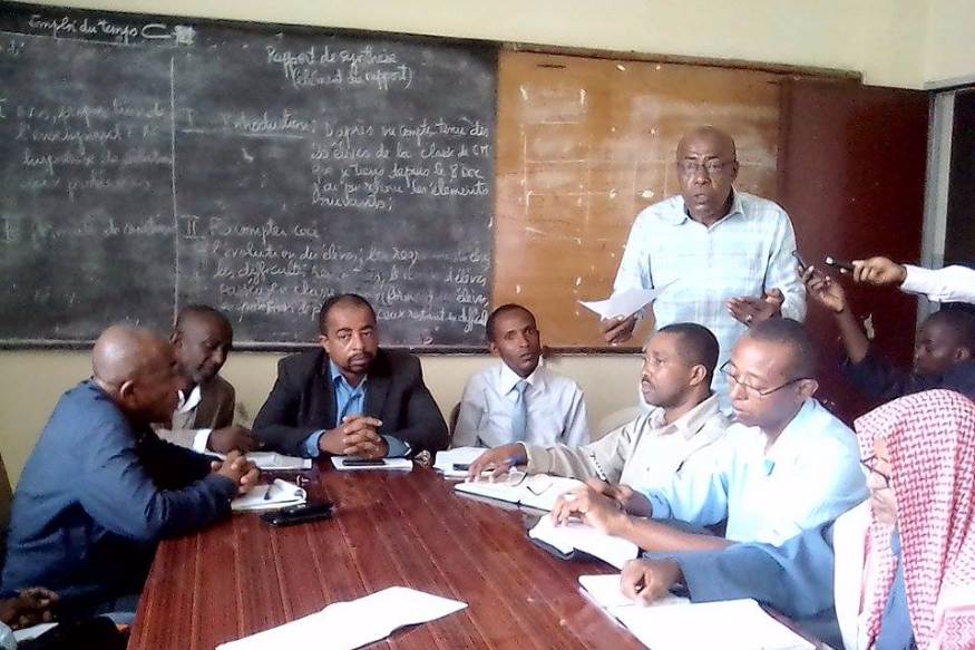 Les maires et les représentants du commissariat à l'éducation en présence du commissaire de l'éducation Mr Ousseine Maoulida.