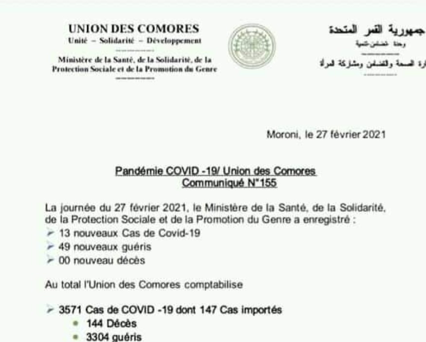 Personne ne connaît pas réellement le nombre exacte de cas positifs. La situation de la Covid_19 en Union des Comores reste énigmatique.