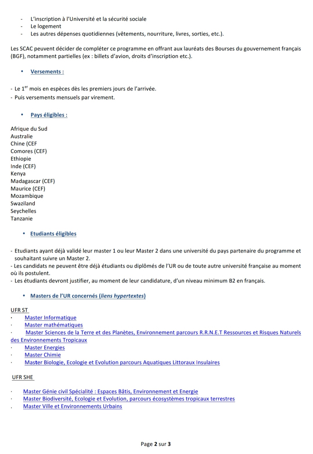 - avoir validé un Master 1 ou Master 2 dans une univérsité de la Zone Océan Indien (ZOI)élargie,