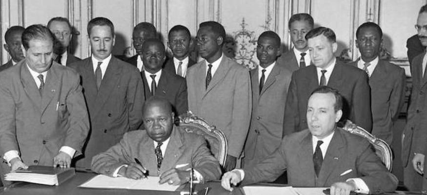 Dès la décolonisation, le Gabon se distingue donc des autres pays d'Afrique francophones : selon plusieurs historiens, le président Léon Mba réclamait donc la départementalisation, statut dont jouissaient la Guadeloupe, la Guyane, la Martinique ou encore La Réunion. D'après plusieurs témoins, Léon Mba suggérait l'introduction au bas du drapeau tricolore (vert, jaune et bleu) d'un petit bout du drapeau français. L'indépendance de 1960 est finalement imposée par Paris. En février 1961, Léon Mba devient président. Trois ans plus tard, il est déposé lors d'un coup d'État, puis réinstallé au pouvoir grâce à une intervention de l'armée française. « L'imaginaire né de cet acte fondateur continue de hanter les rapports entre la France et le Gabon » comme le paysage de la capitale, estime le sociologue-anthropologue gabonais Joseph Tonda, interrogé par l'AFP.
