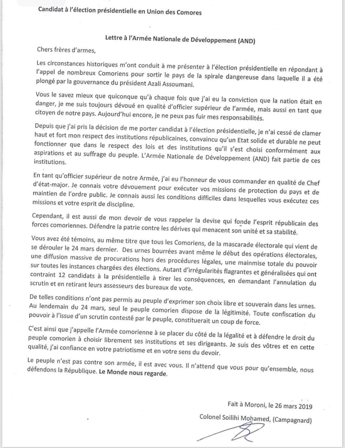Le candidat Campagnard s'est adressé à l'armée nationale