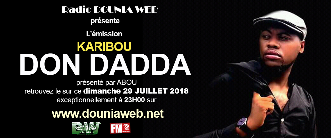 L'équipe de Dounia Web a le plaisir d'accueillier en interview dans l'émission Karibou. L'artiste Don Dadda. Il viendra nous parler son univers et sa musique.